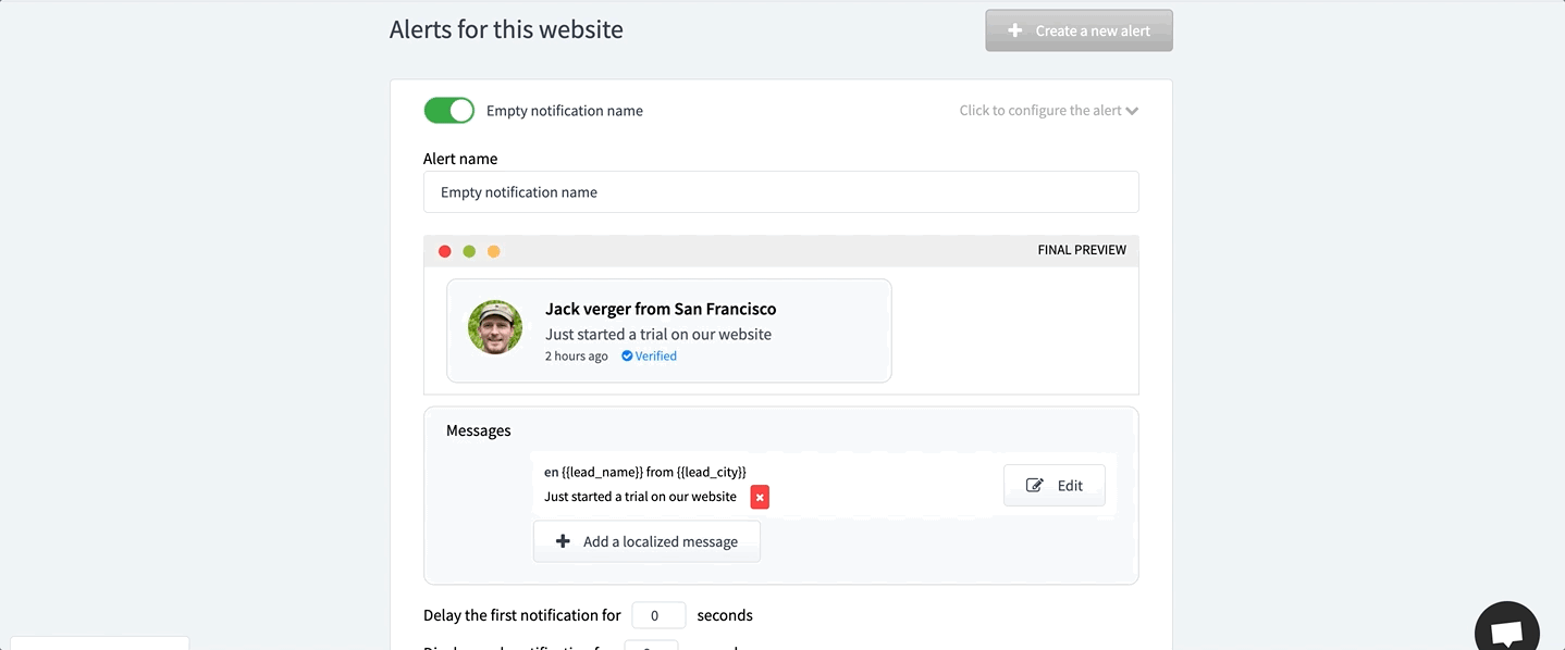 Social proof notification widget to increase credibility on your website
