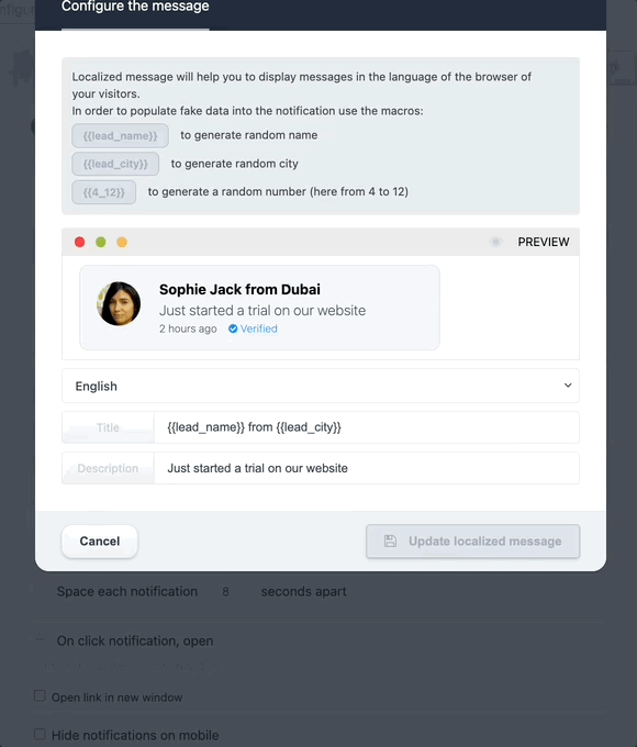 Generate and display notifications on your website by installing a widget to show random messages to your visitors. This will increase your sales and credibility.